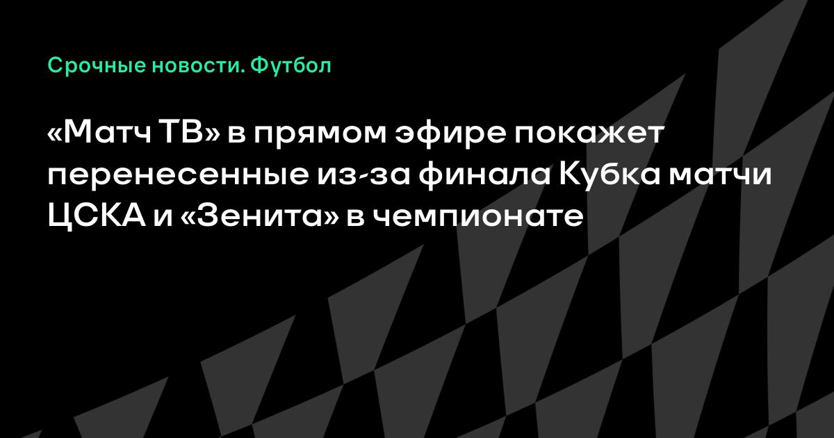 «Матч ТВ» в прямом эфире покажет перенесенные из-за финала Кубка матчи ЦСКА и «Зенита» в чемпионате