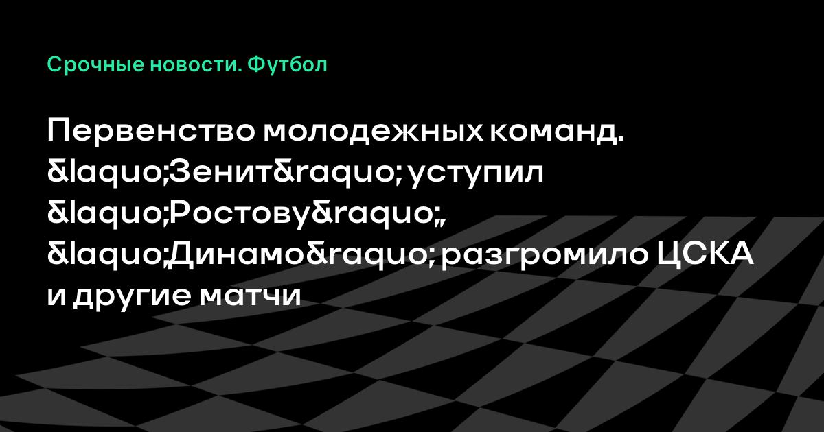 Первенство молодежных команд. «Зенит» уступил «Ростову», «Динамо» разгромило ЦСКА и другие матчи
