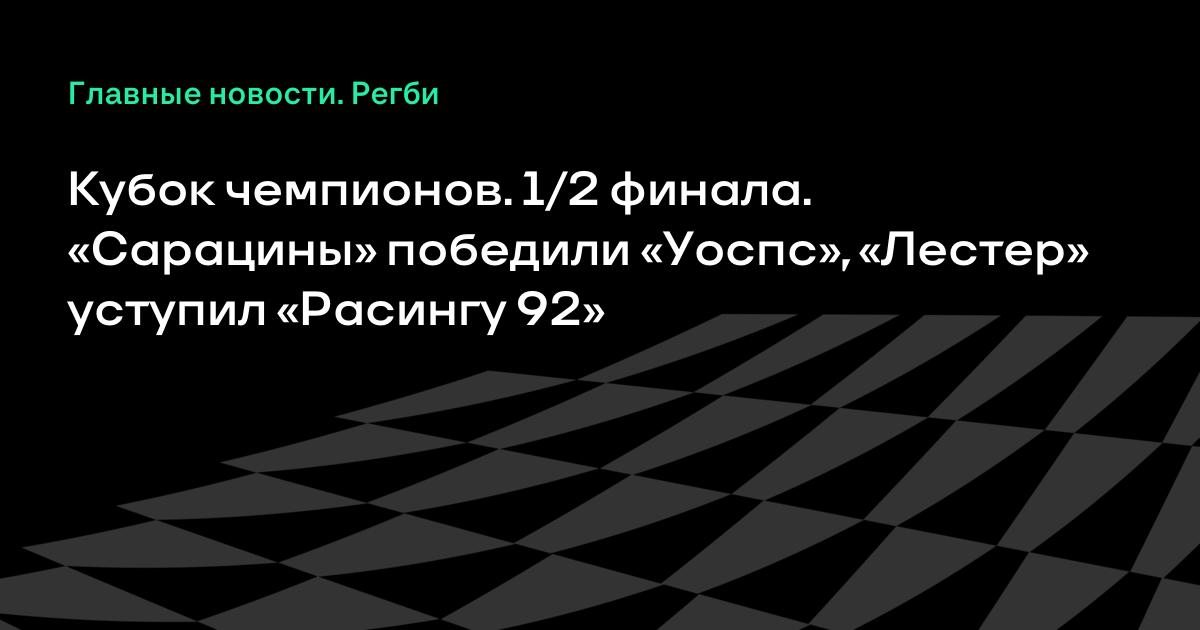 Прошли полуфинальные матчи Кубка чемпионов по регби. «Сарацины» победили «Уоспс» (24:17), «Лестер» уступил «Расингу 92» (16:19).