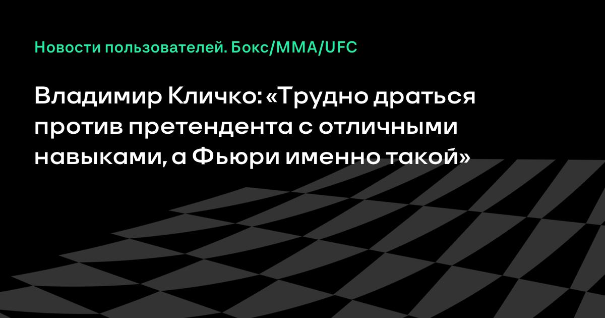Многие люди получают удовольствие от того, что чемпион определённым образом представляет спорт. Мне не нравится, как это делает Фьюри. Никто не равняется на него», — сказал Кличко.
