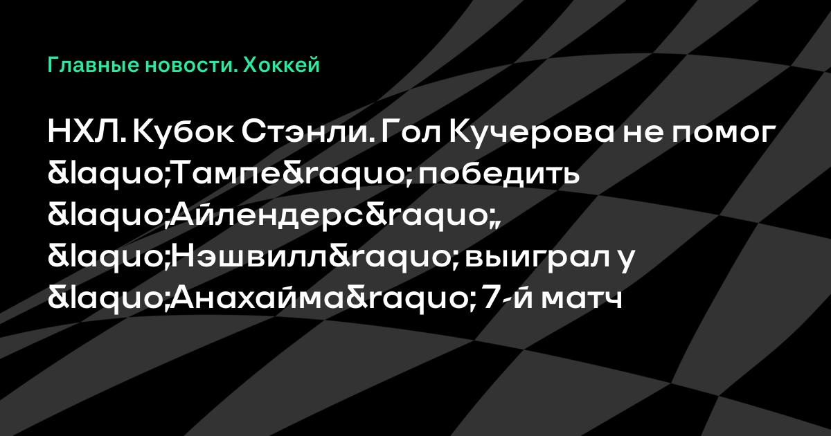 НХЛ. Кубок Стэнли. Гол Кучерова не помог «Тампе» победить «Айлендерс», «Нэшвилл» выиграл у «Анахайма» 7-й матч