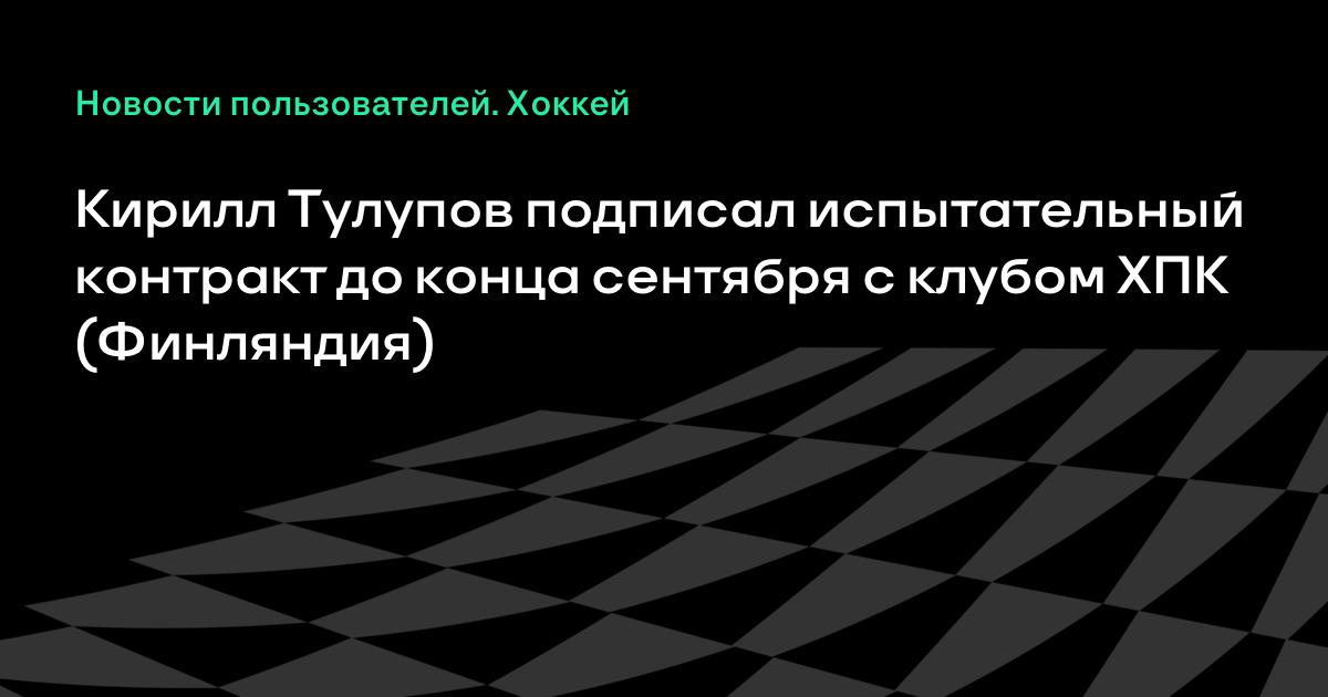 Кирилл Тулупов подписал испытательный контракт до конца сентября с клубом ХПК (Финляндия)