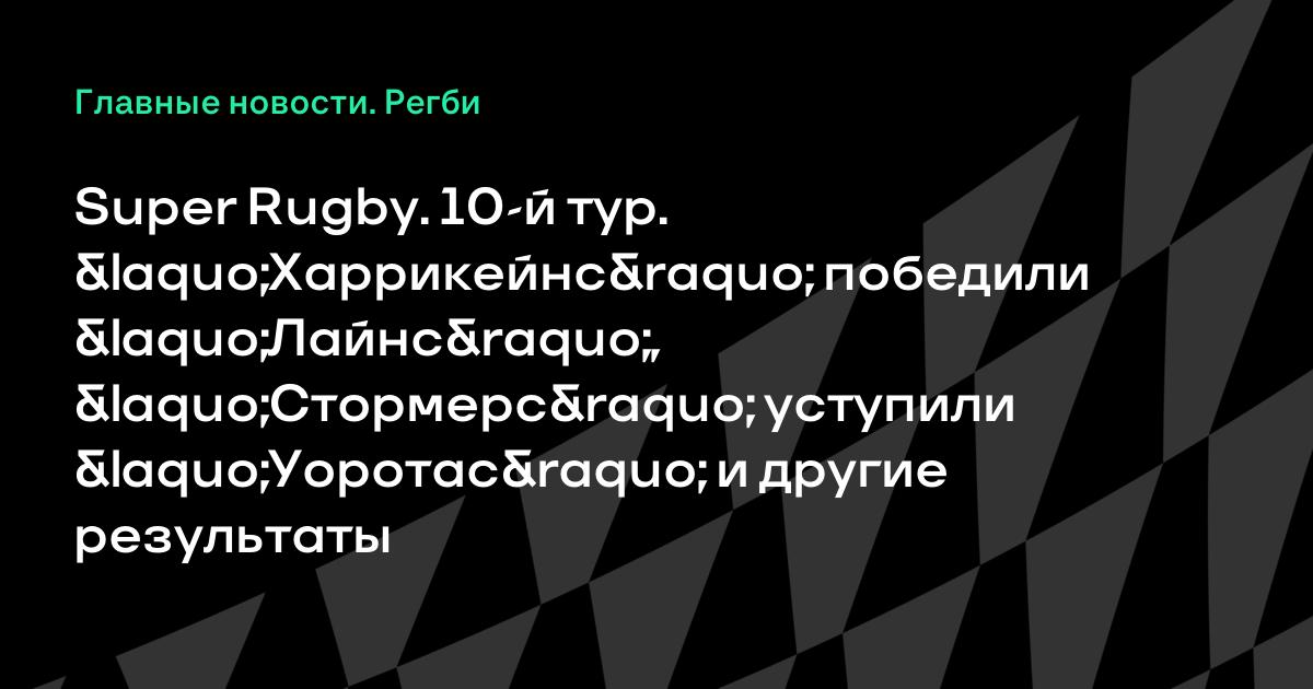 На этой неделе прошел 10-й тур в регбийной лиге Super Rugby. «Харрикейнс» победили «Лайнс» (50:17), «Стормерс» уступили «Уоротас» (30:32).