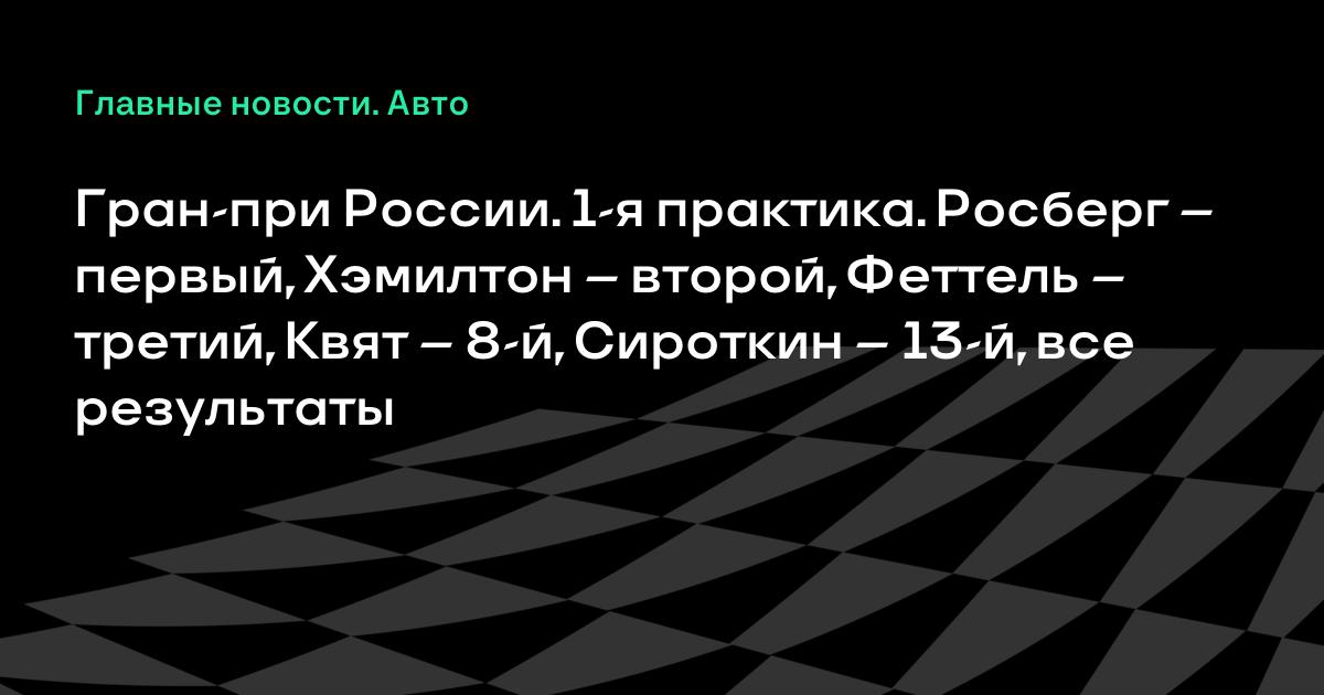 Гран-при России. 1-я практика. Росберг – первый, Хэмилтон – второй, Феттель – третий, Квят – 8-й, Сироткин – 13-й, все результаты