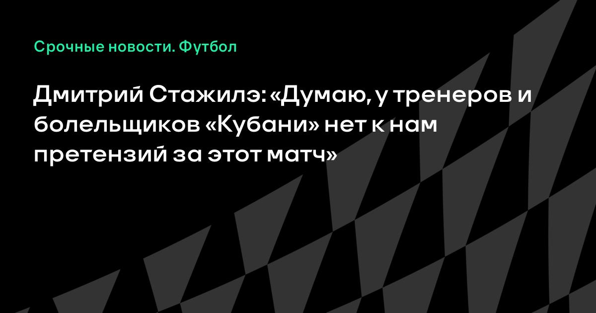 Дмитрий Стажилэ: «Думаю, у тренеров и болельщиков «Кубани» нет к нам претензий за этот матч»