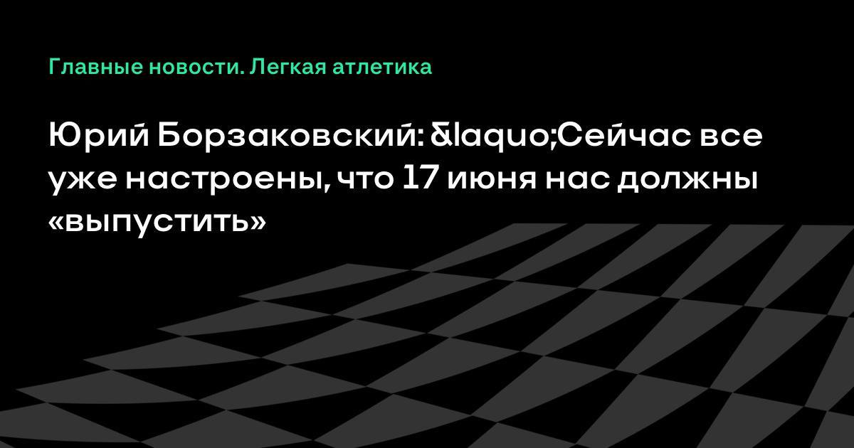 В принципе, сейчас все уже настроены, что 17 июня нас должны «выпустить». Но, что бы там ни решил Совет IAAF, мы продолжаем тренироваться, чтобы быть готовыми в любой момент. Ребята на тренировках подбадривают друг друга. Кто-то работает с психологами. Надеюсь, всё худшее осталось позади. Все готовятся к чемпионату России, отборочному на Олимпийские игры. От отбора мы пока никого не освобождали», – сказал Борзаковский.