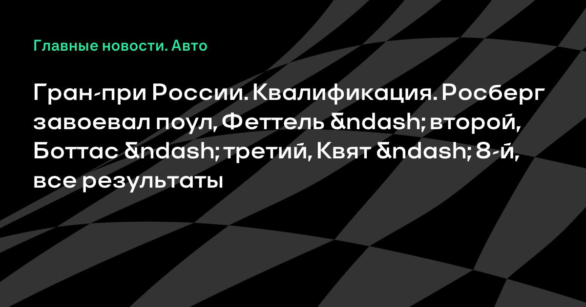 Гран-при России. Квалификация. Росберг завоевал поул, Феттель – второй, Боттас – третий, Квят – 8-й, все результаты