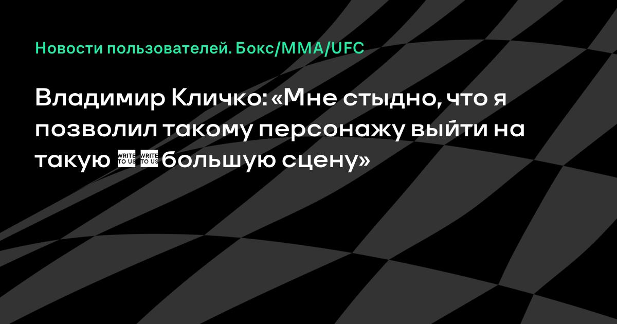 Владимир Кличко: «Мне стыдно, что я позволил такому персонажу выйти на такую большую сцену»