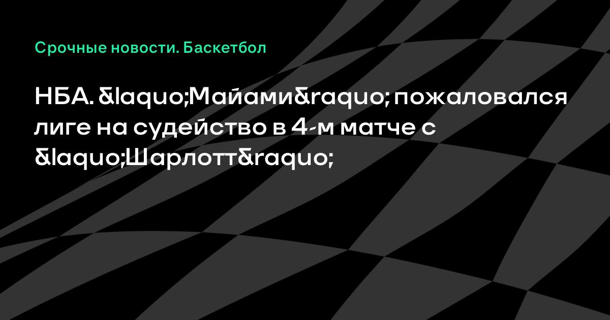 НБА. «Майами» пожаловался лиге на судейство в 4-м матче с «Шарлотт»