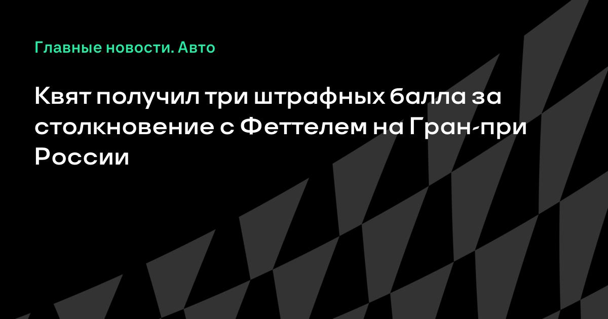 Пилот «Ред Булл» Даниил Квят получил три штрафных балла за столкновение с Себастьяном Феттелем на Гран-при России. Баллы будут списаны с суперлицензии россиянина.