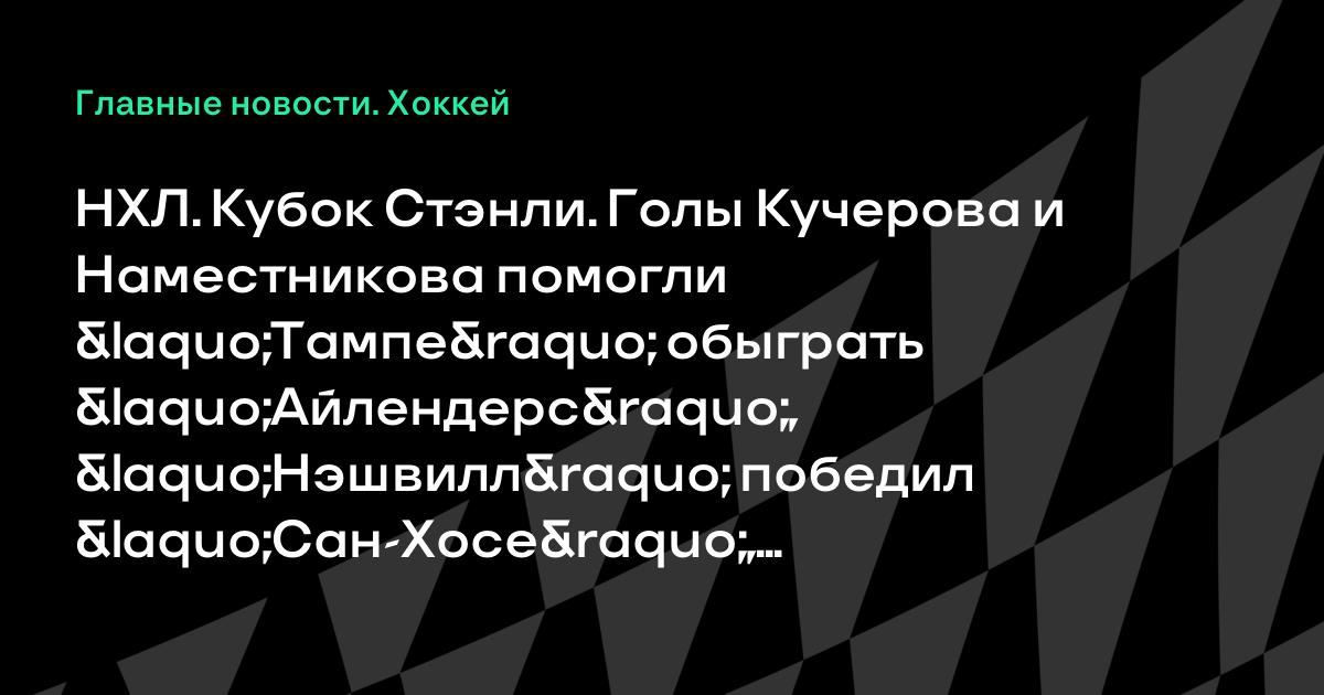 НХЛ. Кубок Стэнли. Голы Кучерова и Наместникова помогли «Тампе» обыграть «Айлендерс», «Нэшвилл» победил «Сан-Хосе», «Сент-Луис» разгромил «Даллас»