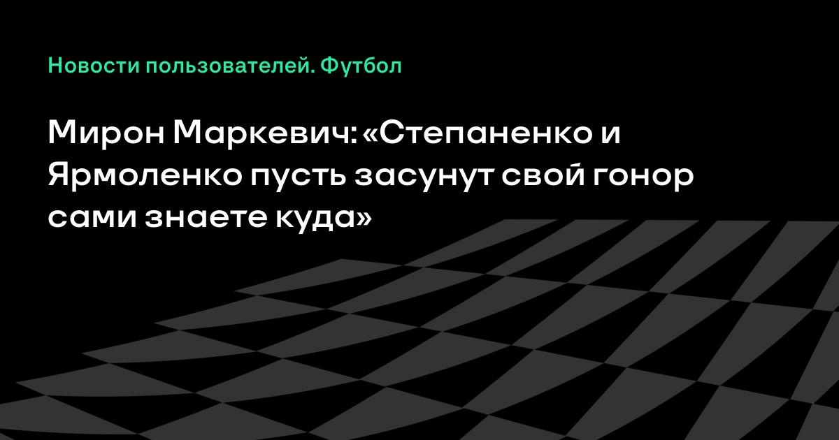 Мирон Маркевич: «Степаненко и Ярмоленко пусть засунут свой гонор сами знаете куда»