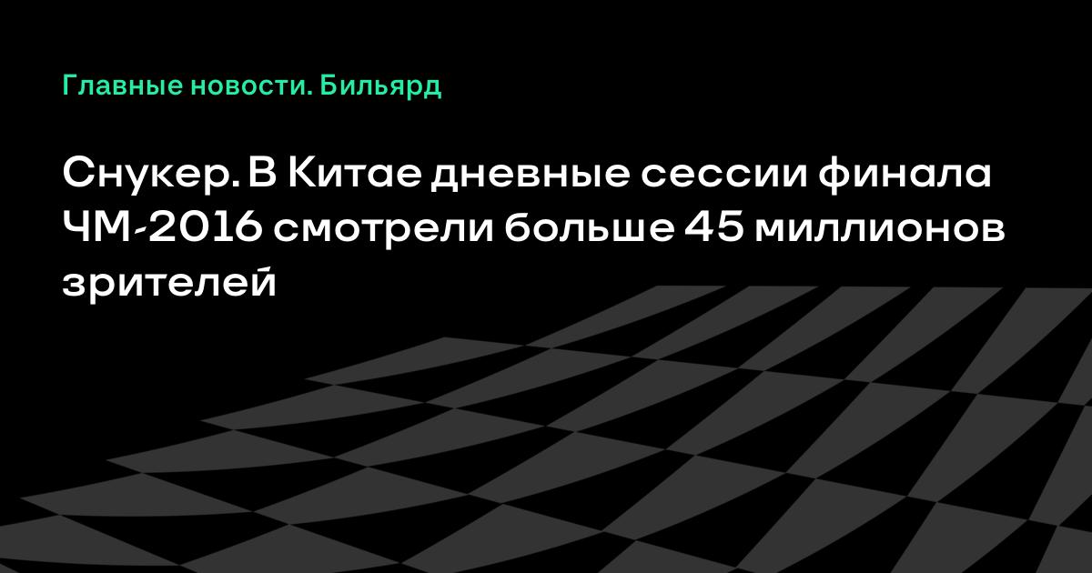 Снукер. В Китае дневные сессии финала ЧМ-2016 смотрели больше 45 миллионов зрителей