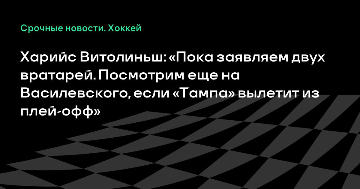 Пока мы должны заявить двух вратарей. Посмотрим еще на Василевского, если «Тампа» вылетит из плей-офф. И потом еще заявим третьего», – сказал Витолиньш.