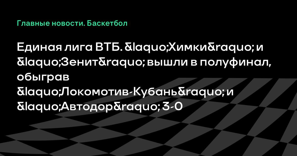 Единая лига ВТБ. «Химки» и «Зенит» вышли в полуфинал, обыграв «Локомотив-Кубань» и «Автодор» 3-0