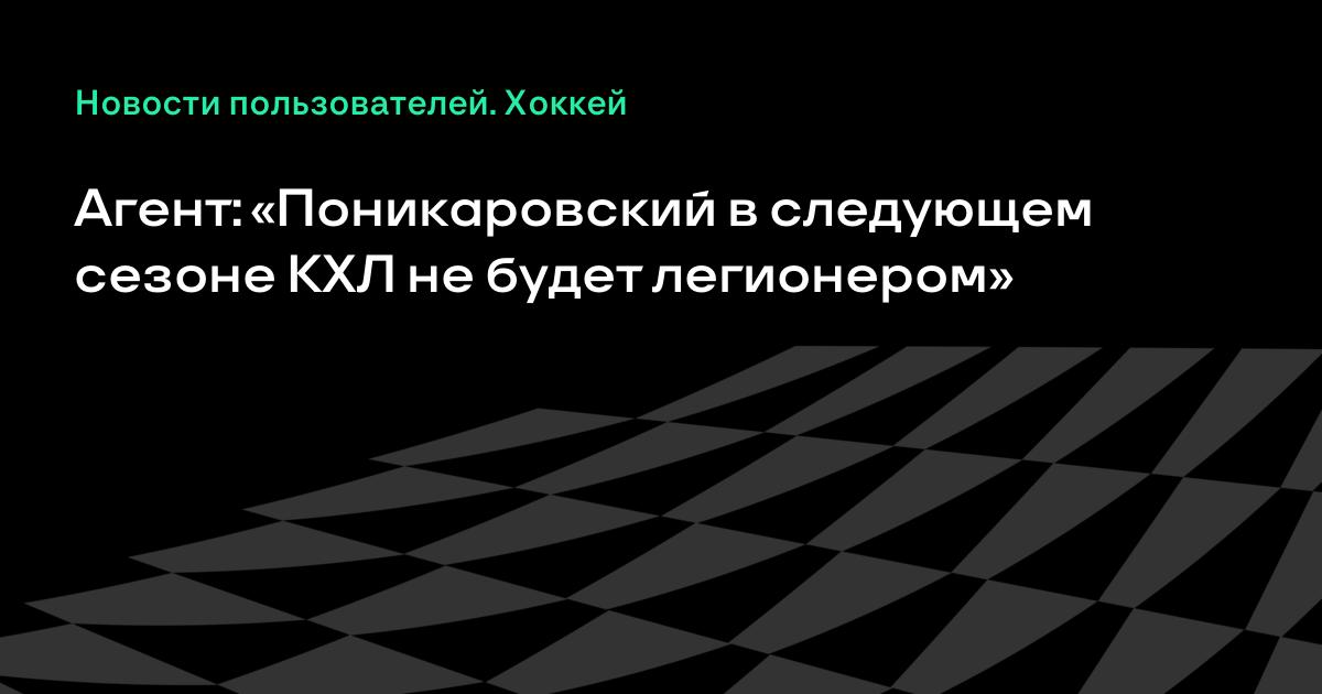 Агент: «Поникаровский в следующем сезоне КХЛ не будет легионером»