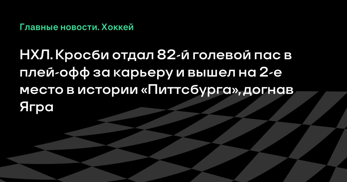 НХЛ. Кросби отдал 82-й голевой пас в плей-офф за карьеру и вышел на 2-е место в истории «Питтсбурга», догнав Ягра