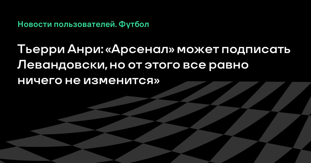 Бывший нападающий «Арсенала» Тьерри Анри сказал, что даже подписание форварда «Баварии» Роберта Левандовски не поможет лондонскому клубу завоевать чемпионство в АПЛ.