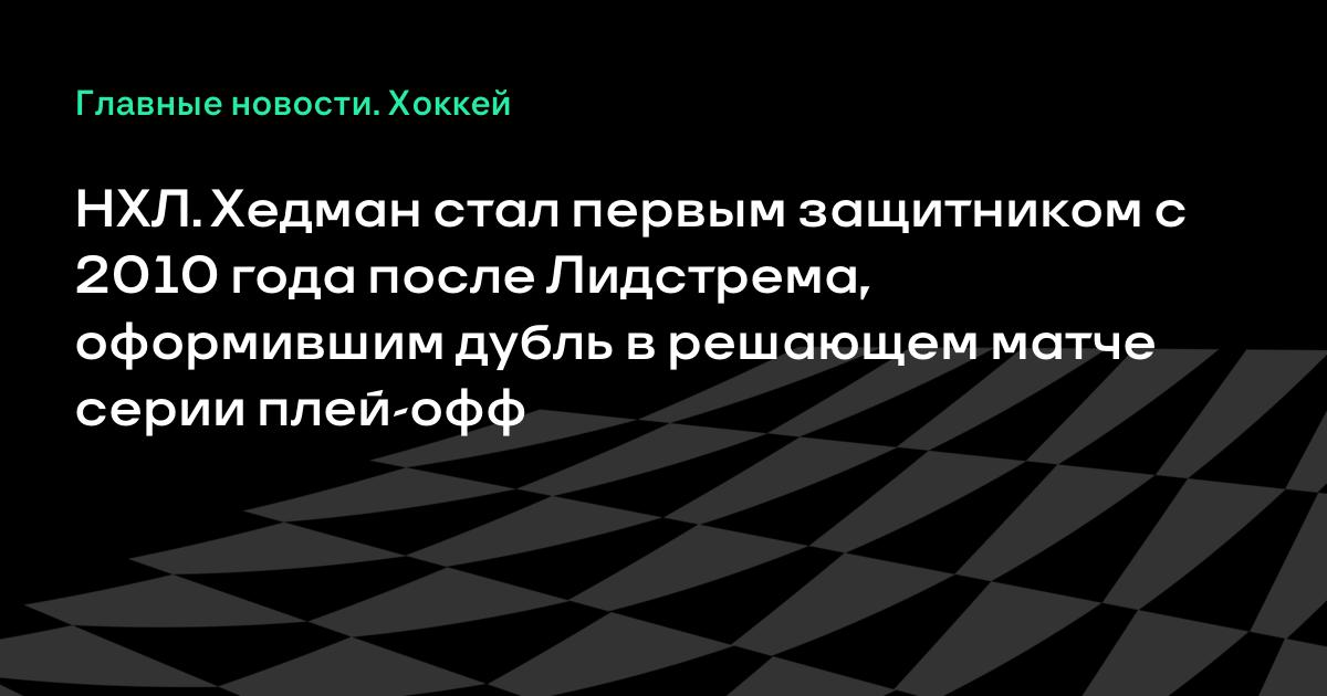 НХЛ. Хедман стал первым защитником с 2010 года после Лидстрема, оформившим дубль в решающем матче серии плей-офф