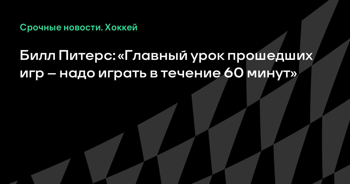 Билл Питерс: «Главный урок прошедших игр – надо играть в течение 60 минут»