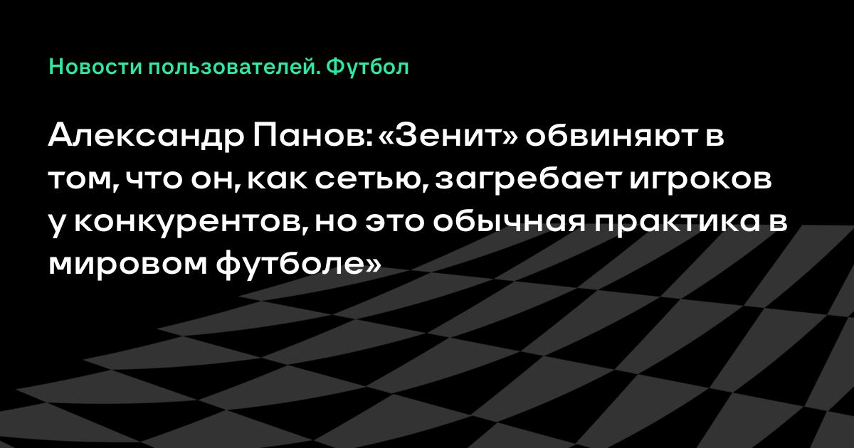 Александр Панов: «Зенит» обвиняют в том, что он, как сетью, загребает игроков у конкурентов, но это обычная практика в мировом футболе»