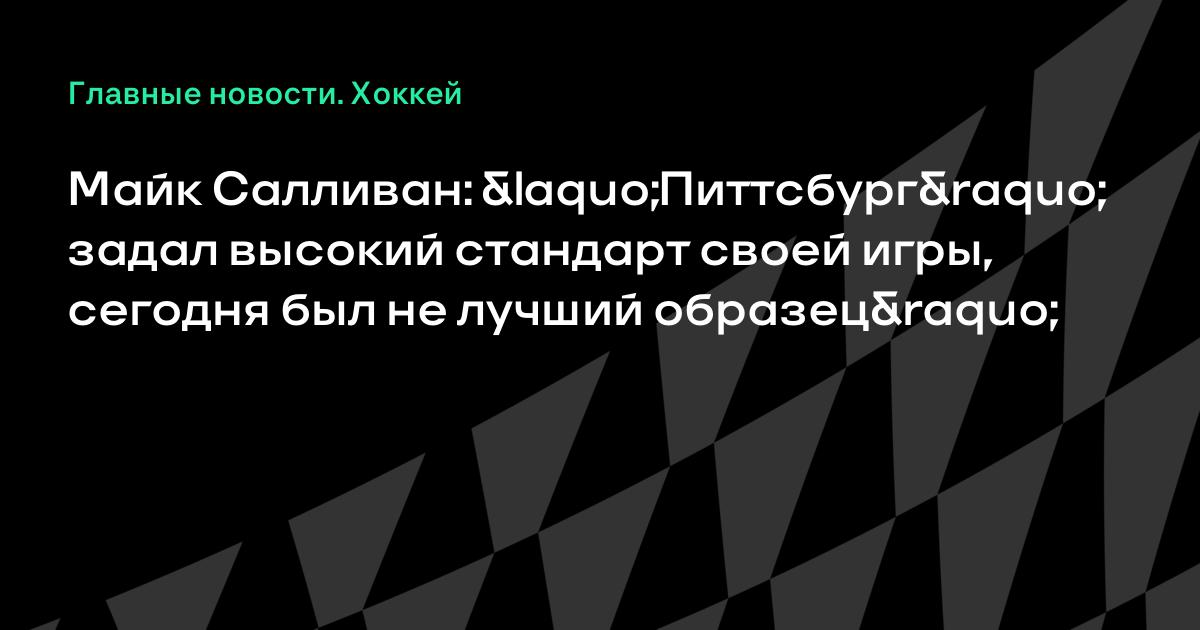Майк Салливан: «Питтсбург» задал высокий стандарт своей игры, сегодня был не лучший образец»