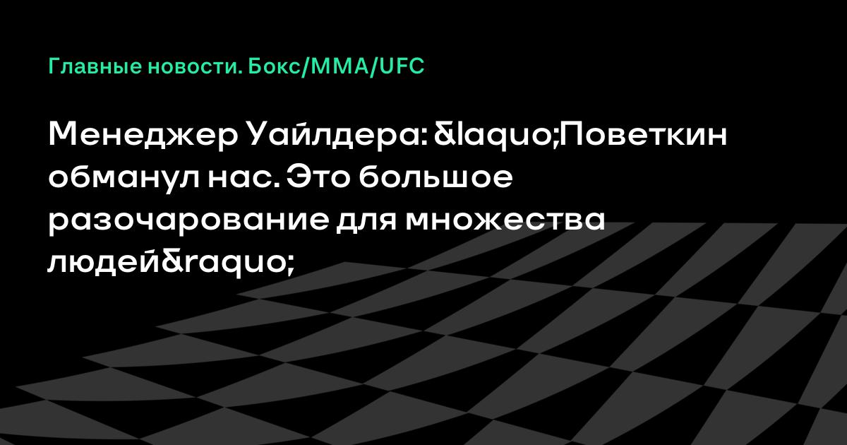 Менеджер Уайлдера: «Поветкин обманул нас. Это большое разочарование для множества людей»