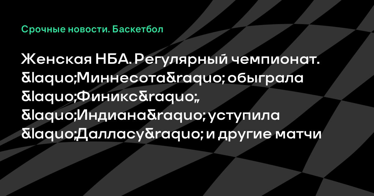Женская НБА. Регулярный чемпионат. «Миннесота» обыграла «Финикс», «Индиана» уступила «Далласу» и другие матчи