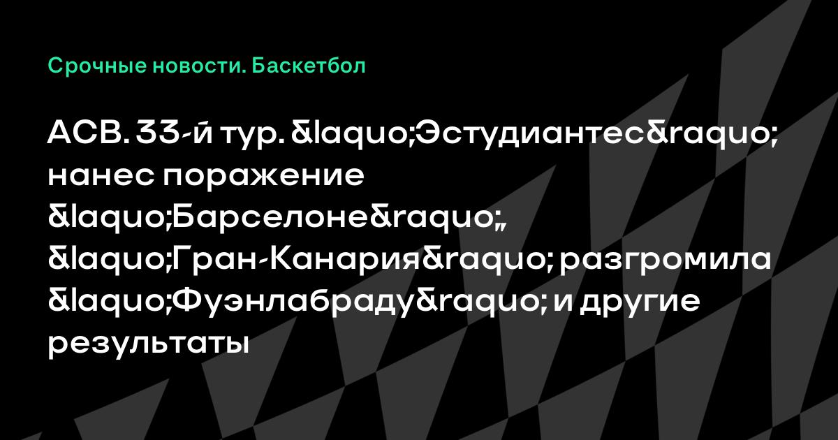 ACB. 33-й тур. «Эстудиантес» нанес поражение «Барселоне», «Гран-Канария» разгромила «Фуэнлабраду» и другие результаты