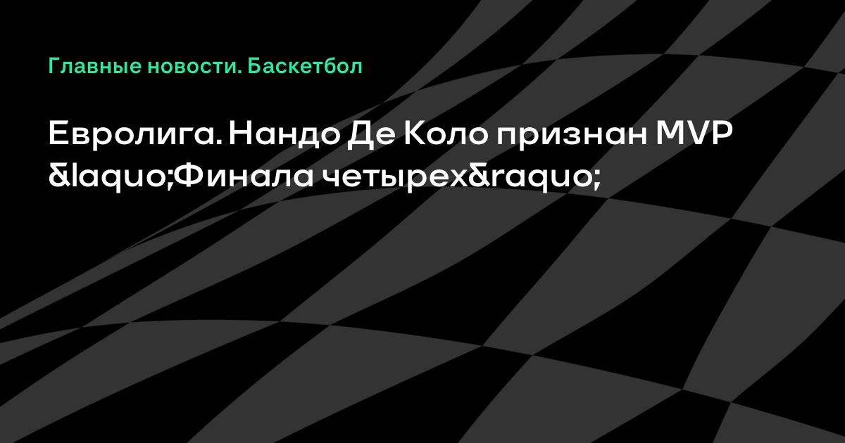 Защитник московского ЦСКА Нандо Де Коло признан самым ценным игроком «Финала четырех» Евролиги, сообщает «Р-Спорт».