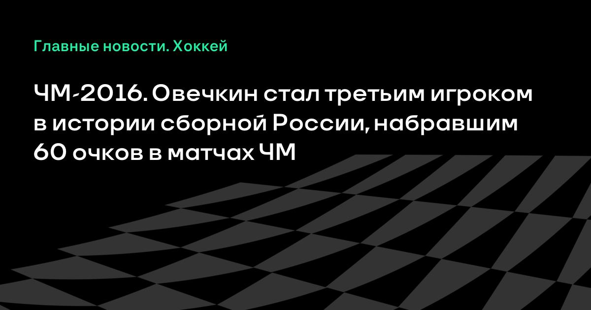 ЧМ-2016. Овечкин стал третьим игроком в истории сборной России, набравшим 60 очков в матчах ЧМ