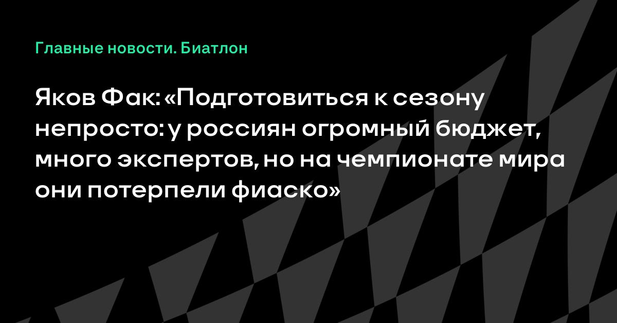 Яков Фак: «Подготовиться к сезону непросто: у россиян огромный бюджет, много экспертов, но на чемпионате мира они потерпели фиаско»
