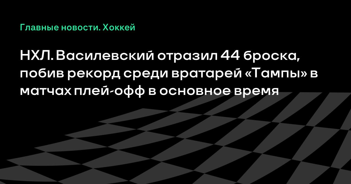 НХЛ. Василевский отразил 44 броска, побив рекорд среди вратарей «Тампы» в матчах плей-офф в основное время