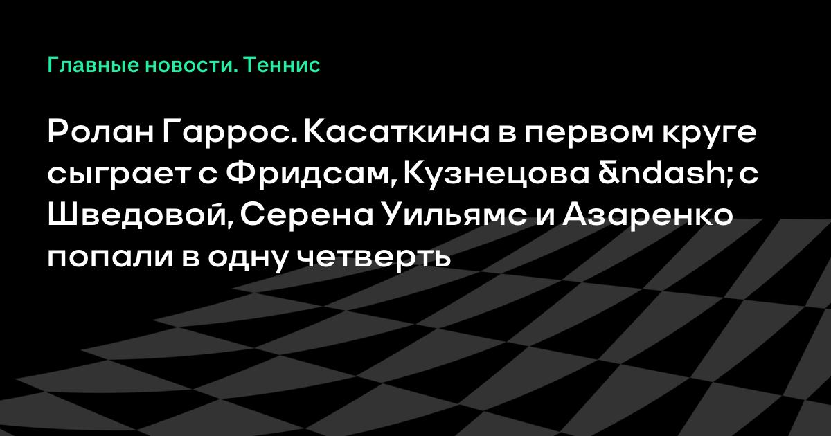 Ролан Гаррос. Касаткина в первом круге сыграет с Фридсам, Кузнецова – с Шведовой, Серена Уильямс и Азаренко попали в одну четверть