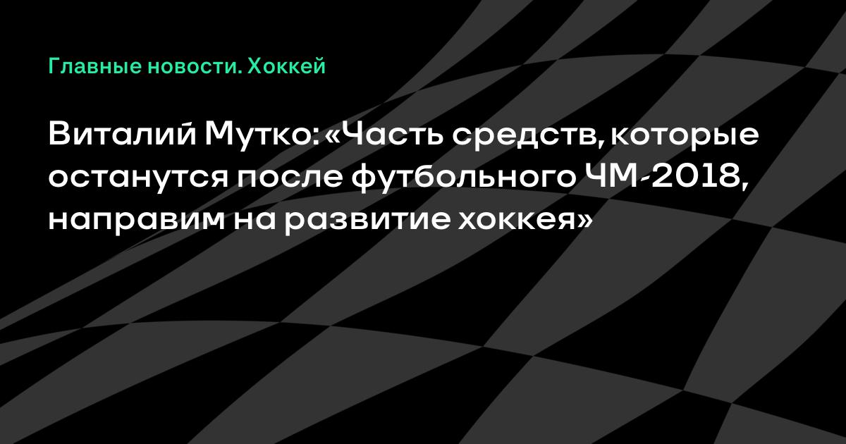 Министр спорта РФ Виталий Мутко сообщил, что часть средств, которые останутся после завершения программы подготовки к проведению ЧМ-2018 по футболу в России, будут направлены на финансирование развития хоккея в стране.