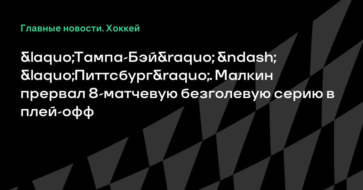 «Тампа-Бэй» – «Питтсбург». Малкин прервал 8-матчевую безголевую серию в плей-офф