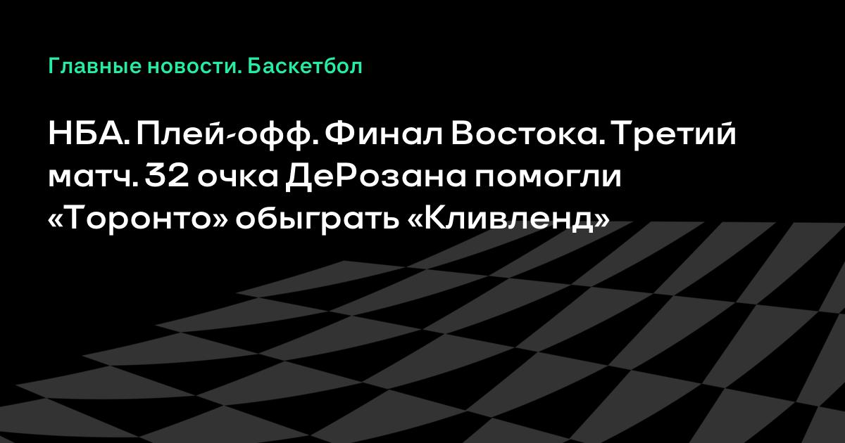 НБА. Плей-офф. Финал Востока. Третий матч. 32 очка ДеРозана помогли «Торонто» обыграть «Кливленд»