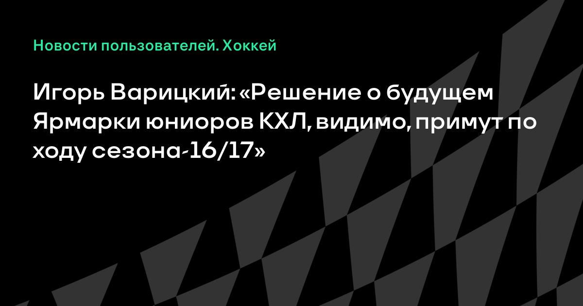 Решение о будущем Ярмарки юниоров, судя по всему, будет принято уже по ходу сезона КХЛ-2016/17, заявил генеральный менеджер подмосковного «Витязя» Игорь Варицкий.