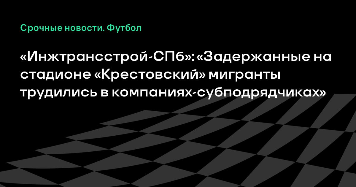 «Инжтрансстрой-СПб»: «Задержанные на стадионе «Крестовский» мигранты трудились в компаниях-субподрядчиках»