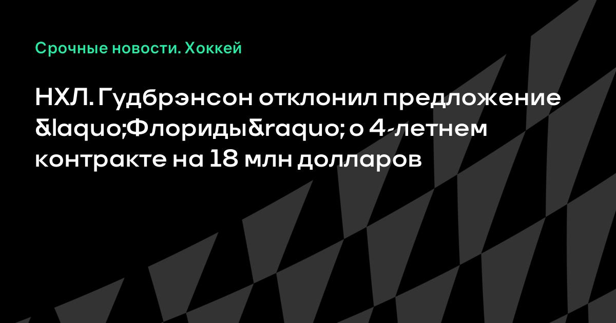 Защитник Эрик Гудбрэнсон не согласился на подписание четырехлетнего контракта с «Флоридой» на 18 миллионов долларов (4,5 млн в год).