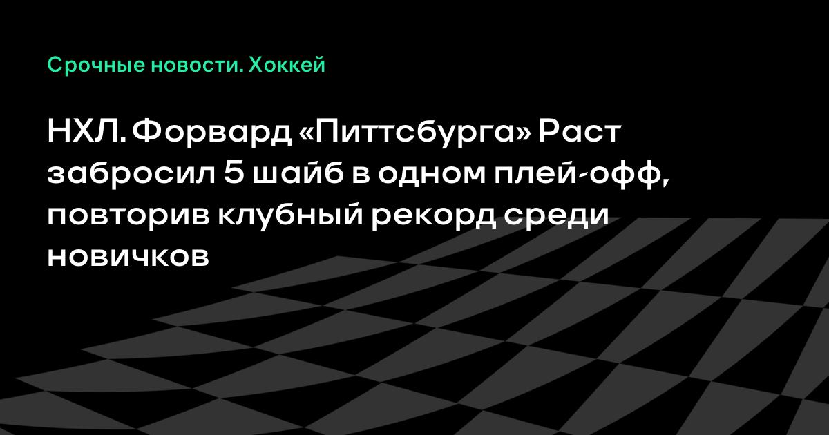 НХЛ. Форвард «Питтсбурга» Раст забросил 5 шайб в одном плей-офф, повторив клубный рекорд среди новичков