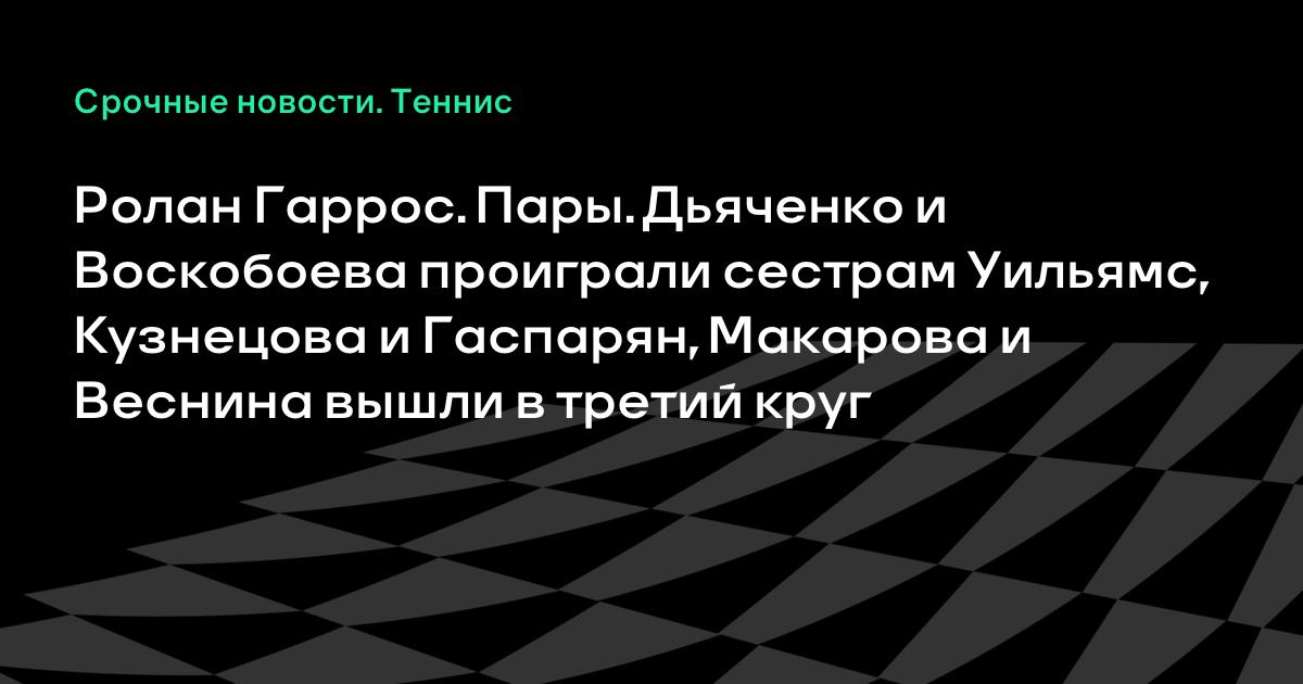 Ролан Гаррос. Пары. Дьяченко и Воскобоева проиграли сестрам Уильямс, Кузнецова и Гаспарян, Макарова и Веснина вышли в третий круг