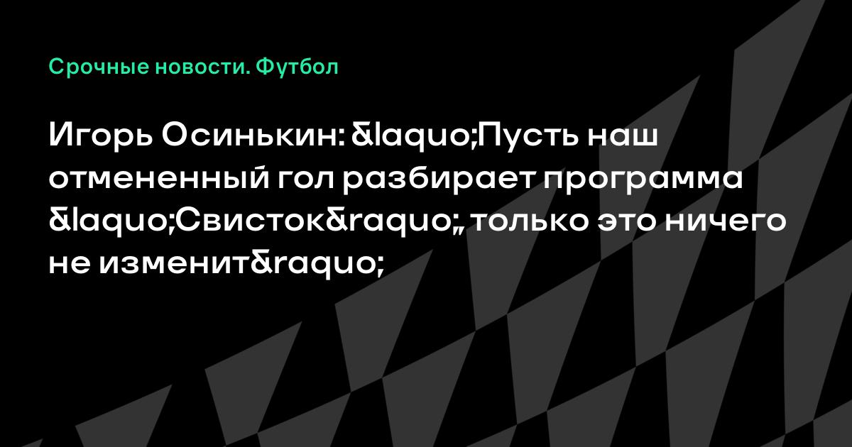 Игорь Осинькин: «Пусть наш отмененный гол разбирает программа «Свисток», только это ничего не изменит»