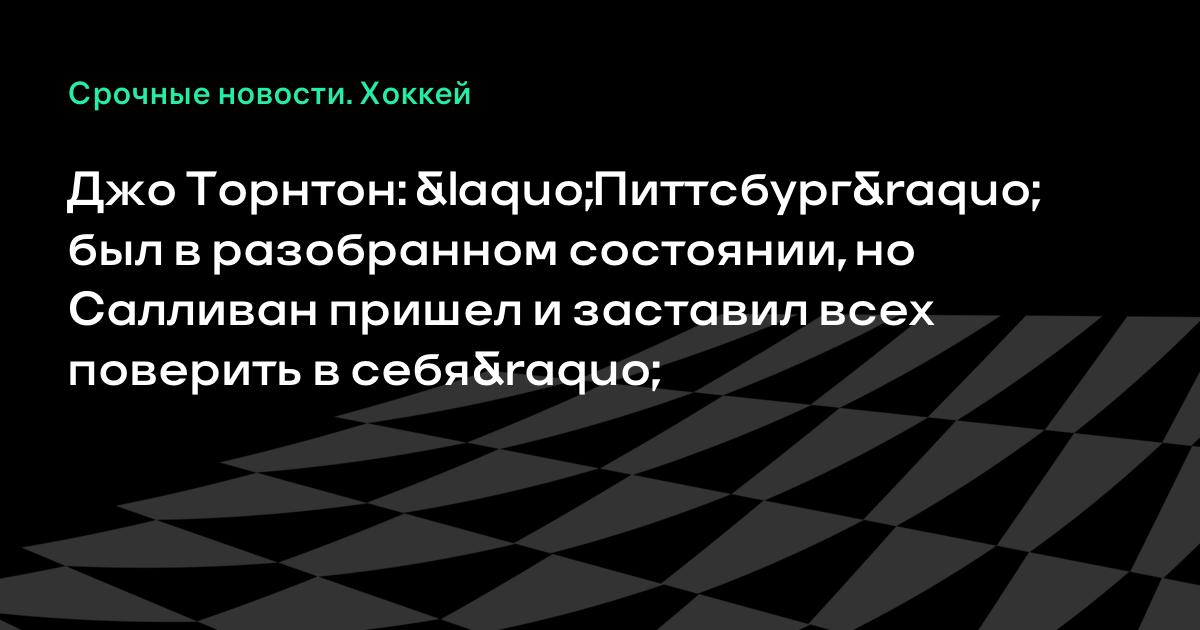Джо Торнтон: «Питтсбург» был в разобранном состоянии, но Салливан пришел и заставил всех поверить в себя»