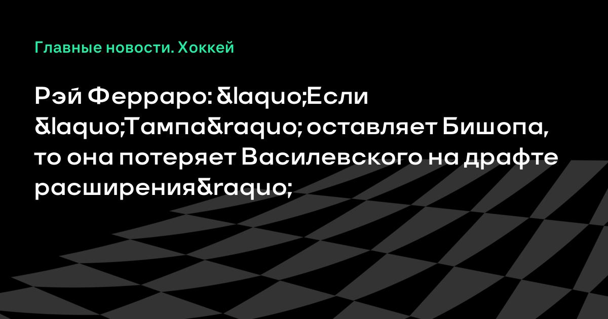 Рэй Ферраро: «Если «Тампа» оставляет Бишопа, то она потеряет Василевского на драфте расширения»