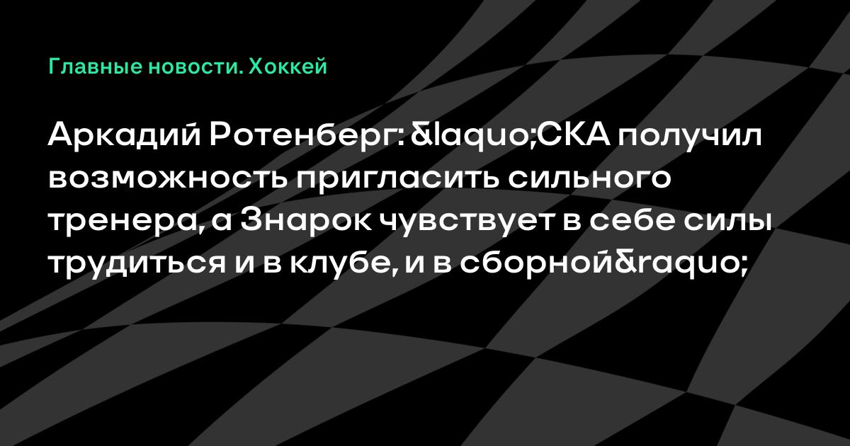 Аркадий Ротенберг: «СКА получил возможность пригласить сильного тренера, а Знарок чувствует в себе силы трудиться и в клубе, и в сборной»