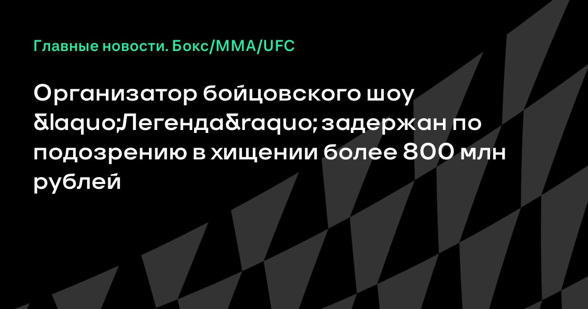 Организатор бойцовского шоу «Легенда» задержан по подозрению в хищении более 800 млн рублей