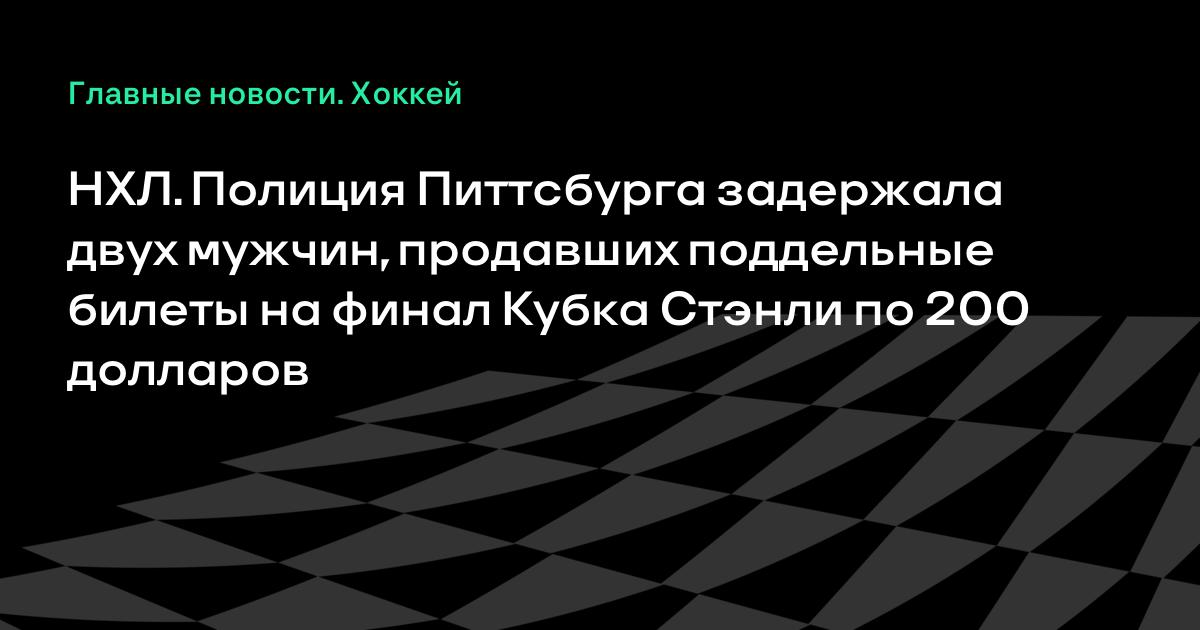 НХЛ. Полиция Питтсбурга задержала двух мужчин, продавших поддельные билеты на финал Кубка Стэнли по 200 долларов