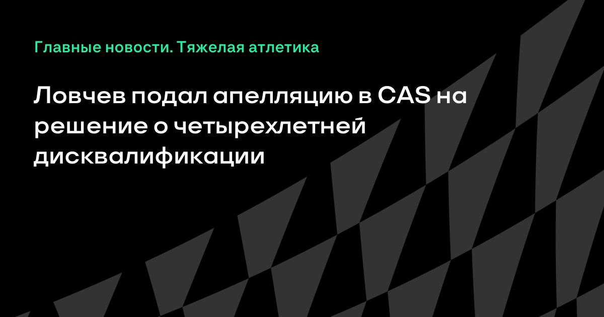 Адвокат российского тяжелоатлета Алексея Ловчева Артем Пацев сообщил, что спортсмен подал апелляцию в Спортивный арбитражный суд (CAS) на решение о дисквалификации.
