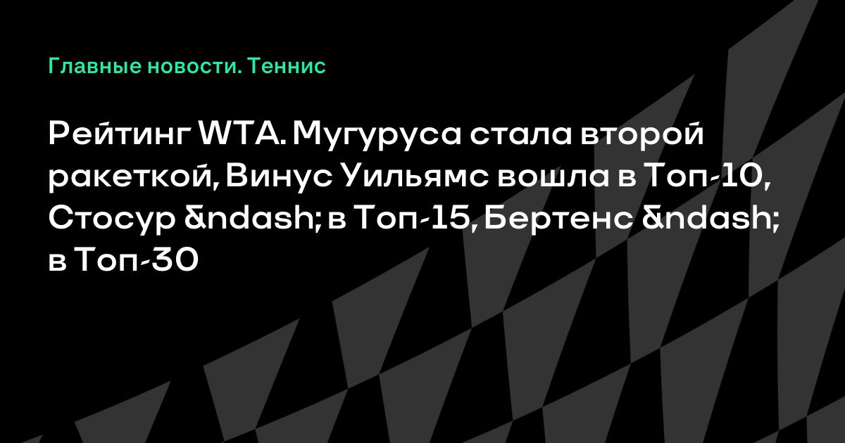 Рейтинг WTA. Мугуруса стала второй ракеткой, Винус Уильямс вошла в Топ-10, Стосур – в Топ-15, Бертенс – в Топ-30